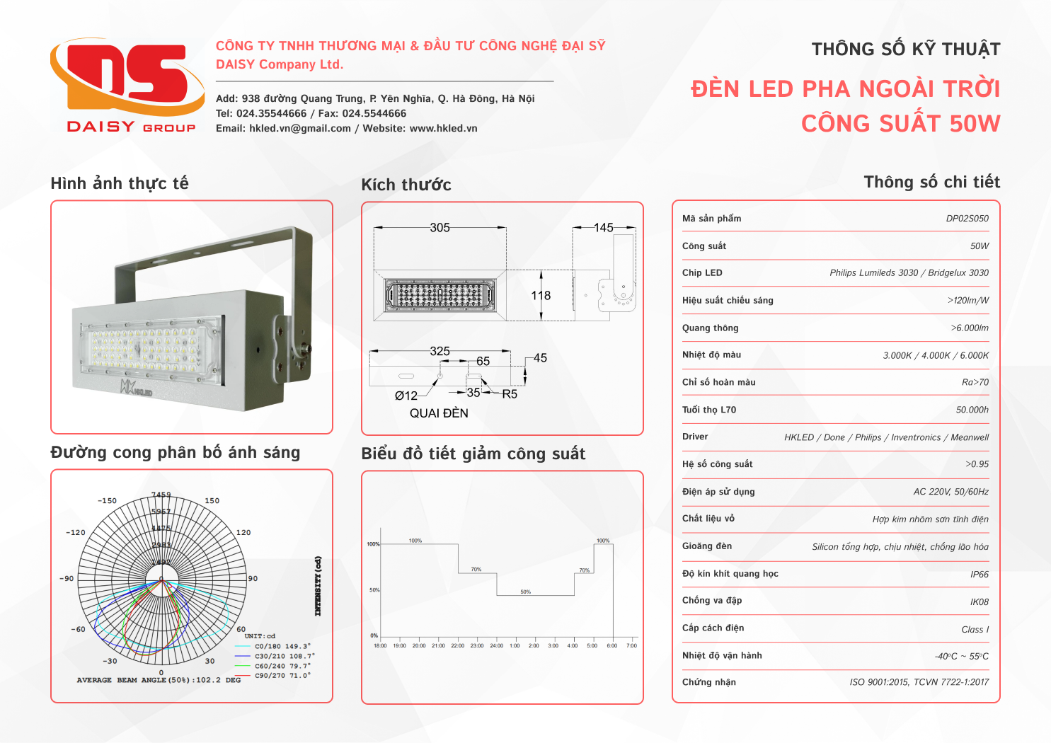 Với công suất 50W, đèn mang lại ánh sáng mạnh mẽ nhưng vẫn đảm bảo tiết kiệm điện năng vượt trội so với các loại đèn truyền thống.