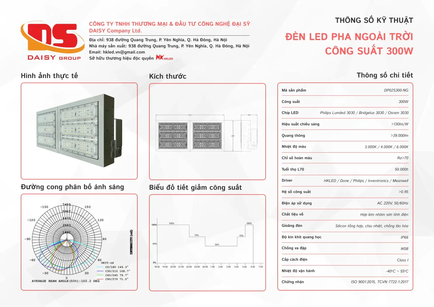 - Nhiệt độ màu từ 2700K đến 6500K theo yêu cầu