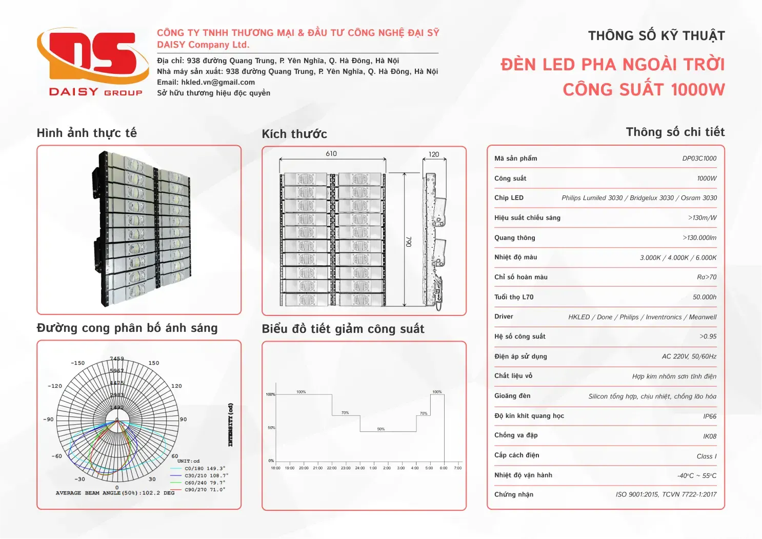 • Nhiệt độ màu: 3.000K / 4.000K / 6.000K