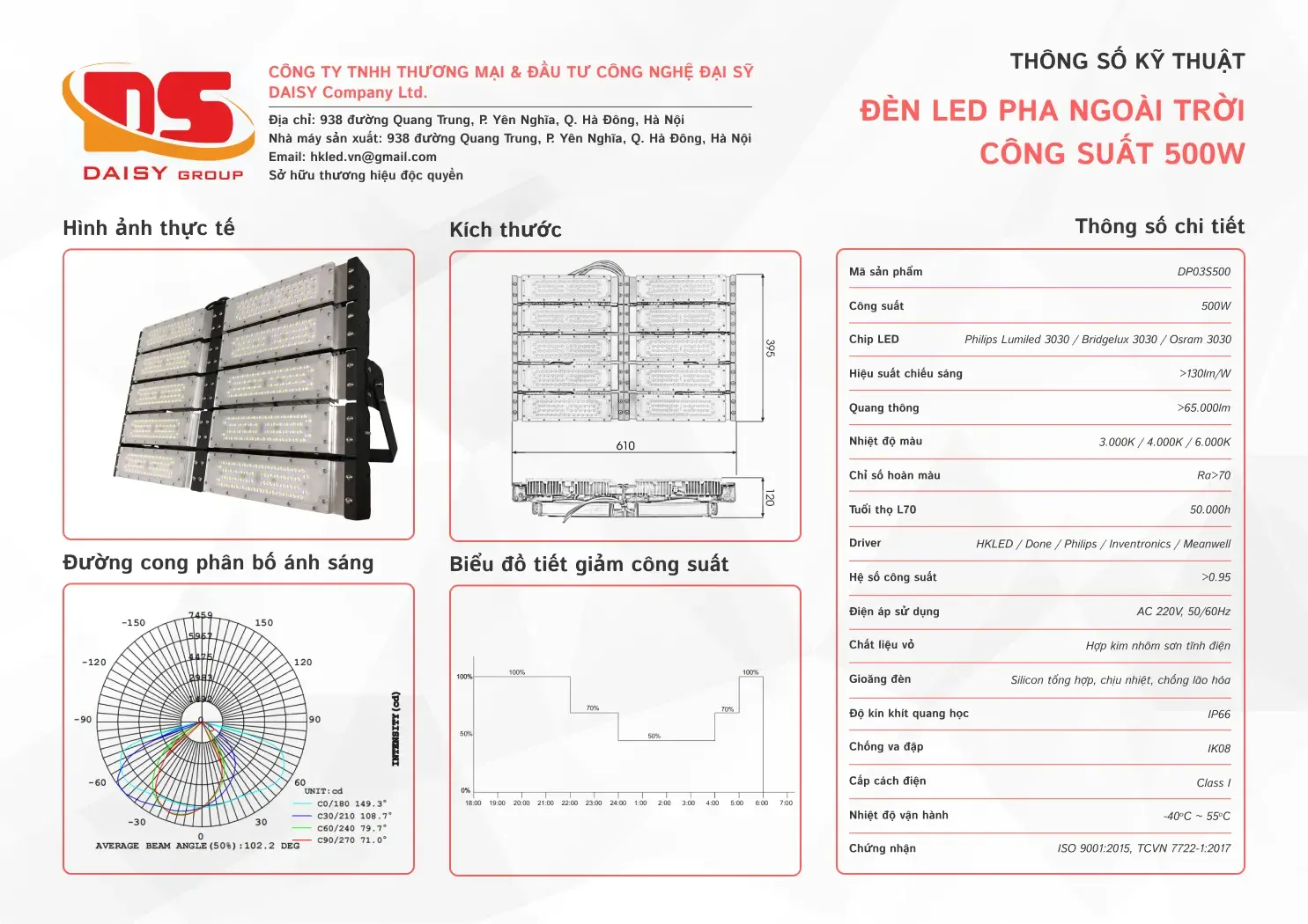 • Hiệu suất chiếu sáng: 130lm/W