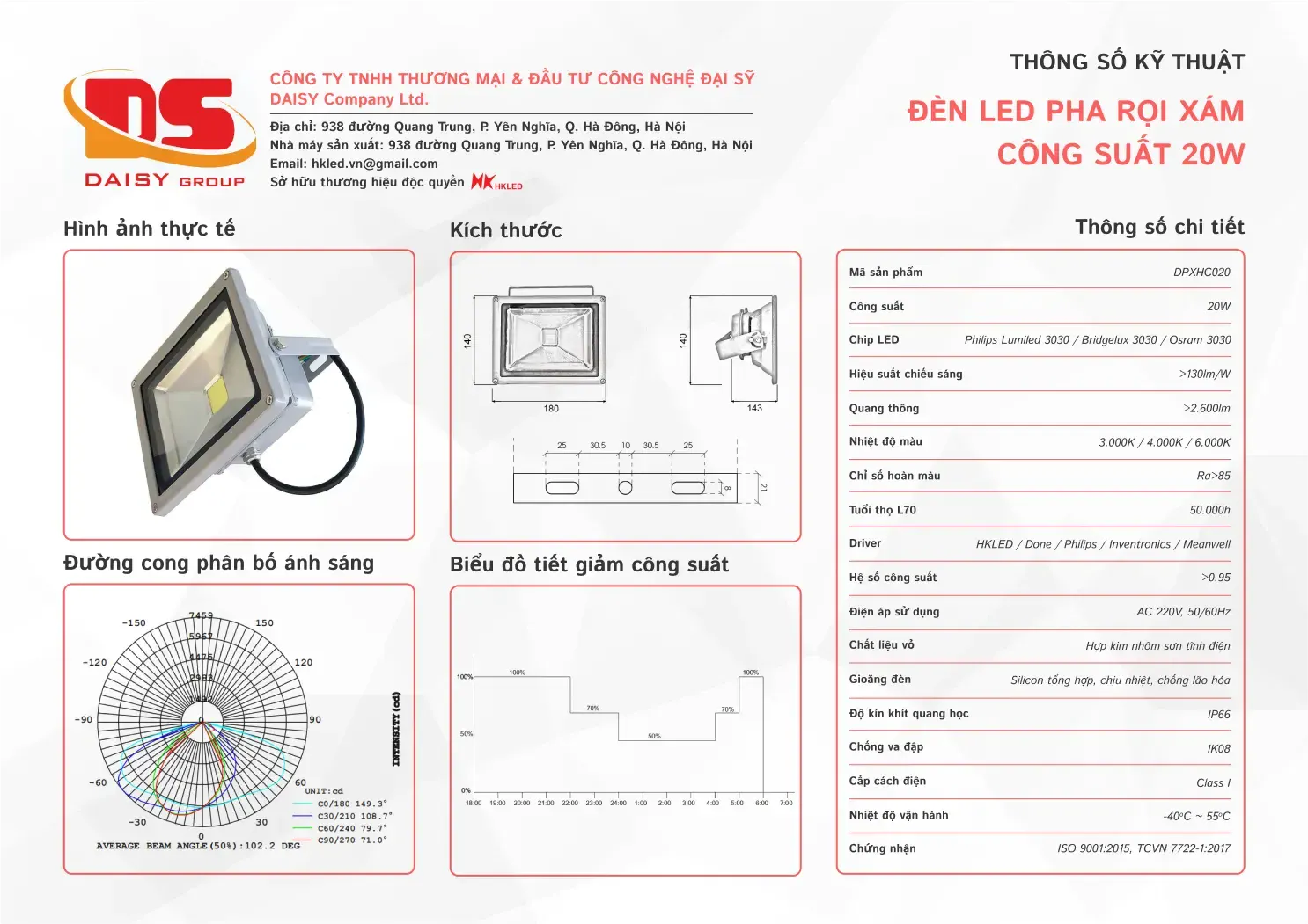 • Hiệu suất chiếu sáng: 130lm/W