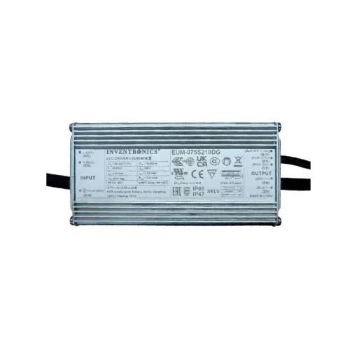 Nguồn điện INVENTRONICS công suất 75W là dòng driver LED cao cấp được sử dụng rộng rãi trong các hệ thống chiếu sáng ngoài trời, đèn LED công nghiệp, đèn đường, đèn nhà xưởng và các công trình yêu cầu nguồn điện ổn định, chống nước tốt và tuổi thọ cao. Đây là dòng nguồn nổi bật của thương hiệu Nguồn driver led Inventronics 75W (EUM-075S210DG) với thiết kế chuyên dùng cho LED công suất trung bình đến cao.