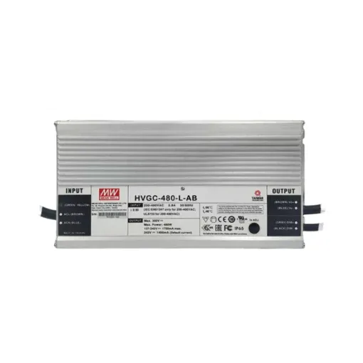 Nguồn MEANWELL HVGC công suất 480W là bộ driver LED công nghiệp chuyên dùng để cấp nguồn ổn định cho chip LED và module LED công suất lớn. Dòng nguồn này giúp đảm bảo dòng điện ổn định, tăng độ bền cho hệ thống chiếu sáng và hạn chế suy giảm hiệu suất khi vận hành liên tục.