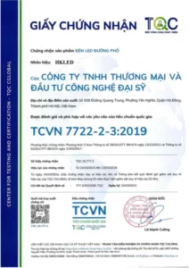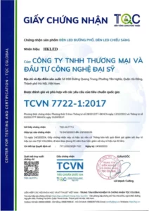 - Tiêu chuẩn: ISO 9001:2015, TCVN 7722-1:2017